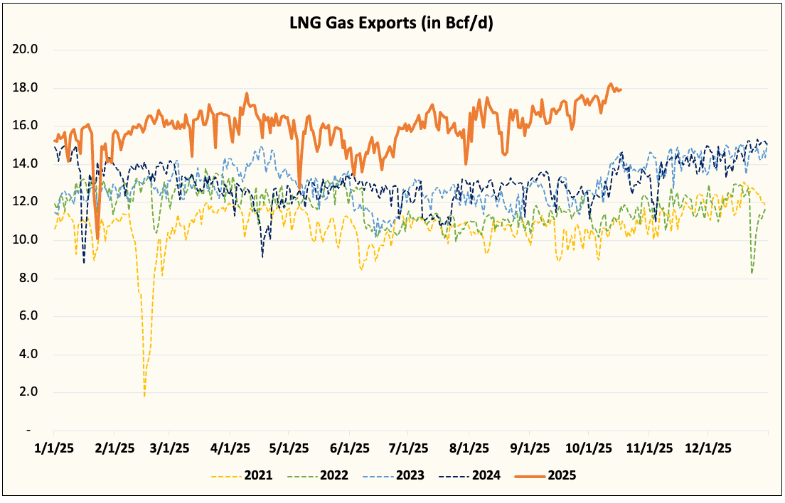 Simple, LNG gas export demand is headed for record highs this winter. Europe has a natural gas shortage going into this winter so US LNG liquification facilities will be operating at max. With new capacity coming online, LNG feedgas is expected to hit and average ~19 Bcf/d.